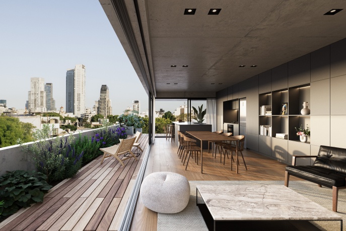 Cada unidad está pensada como un espacio en evolución: con patios propios, grandes expansiones y distribuciones que permiten expresarse desde la forma de habitar. En los niveles superiores, las terrazas privadas llevan esa experiencia un paso más allá.